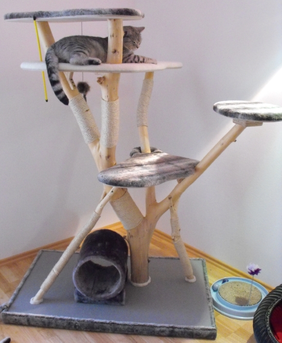 4 Ebenen, bezogen mit hellem Plüsch und Fellnachbildung