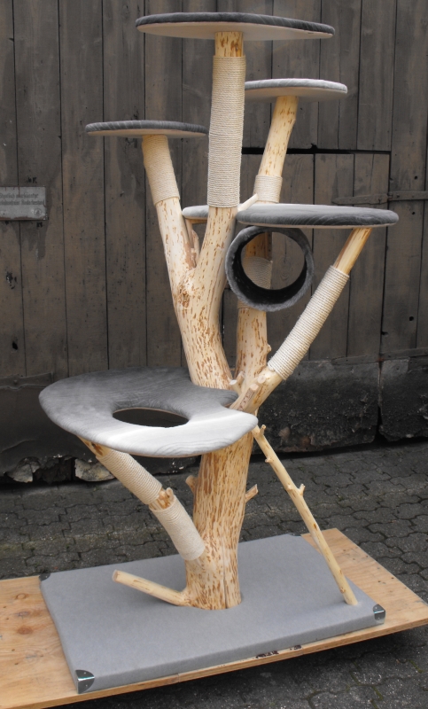 5 Ebenen, bezogen mit kuscheligem Stoff,eine davon mit Loch zum Durchklettern
