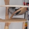 4 Ebenen, bezogen mit Fell-/Lederimitat,eine davon halbrund, eine mit Rand