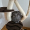 Dreieckiger Sockel mit Sisalteppich überzogen